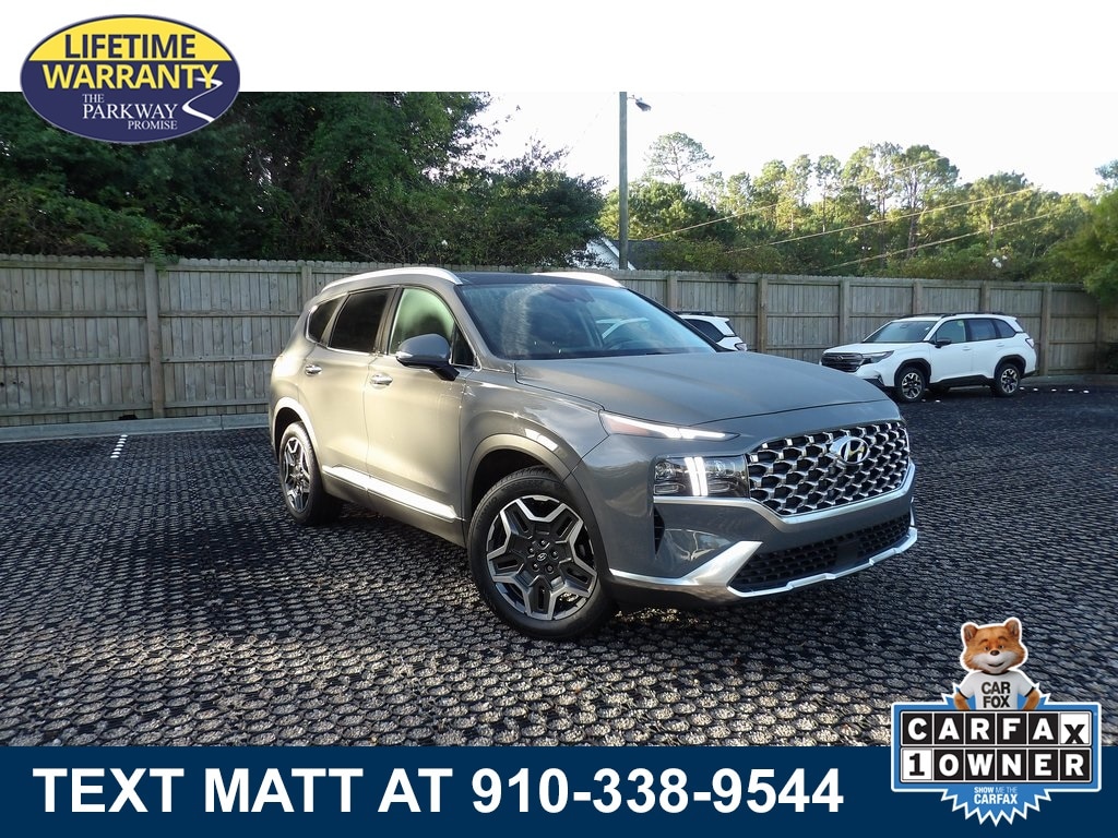 Certified. Hampton Gray 2023 Hyundai Santa Fe Limited FWD Shiftronic 2.5L I4 Black Leather.