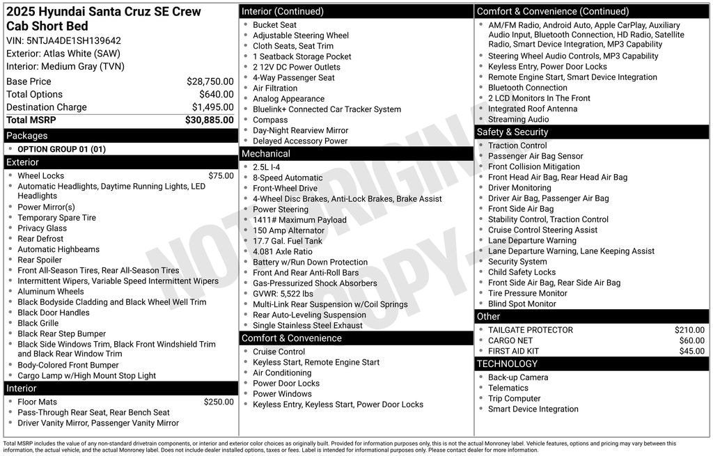 Certified. Atlas White 2025 Hyundai Santa Cruz SE FWD 8-Speed Automatic with SHIFTRONIC 2.5L I4