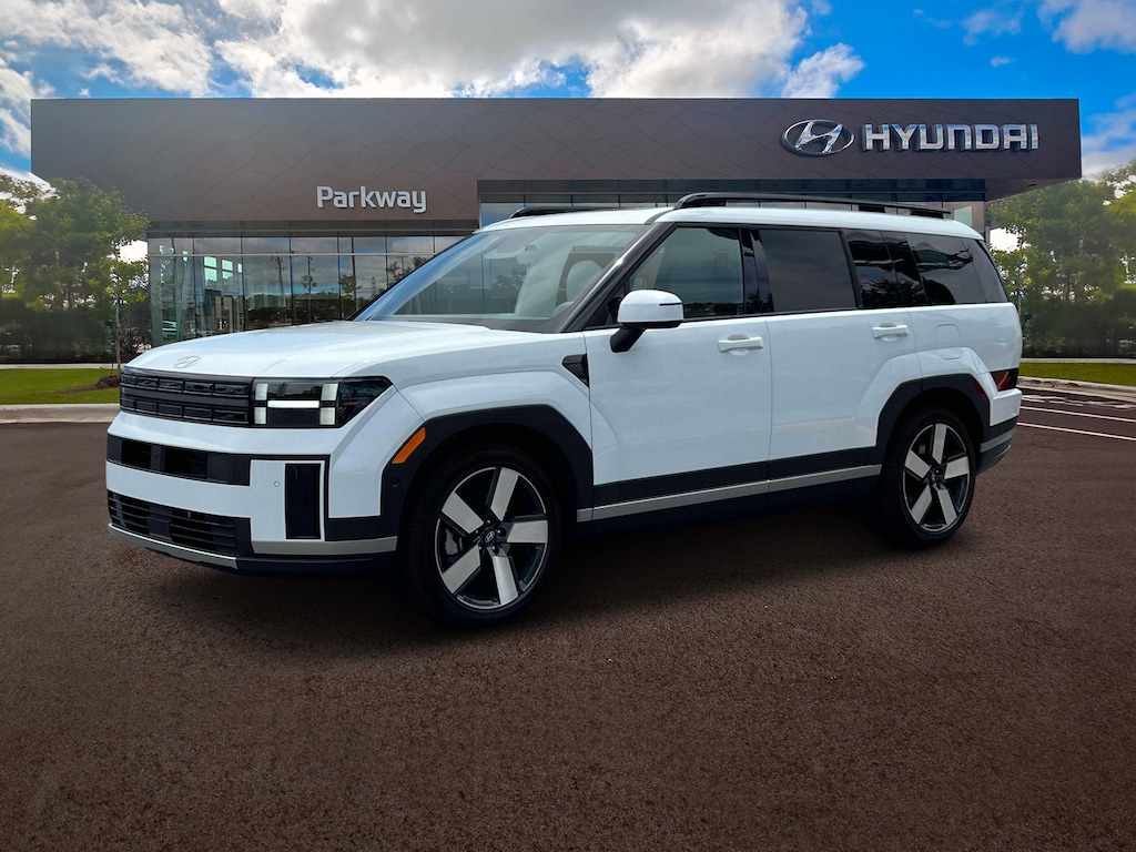 Certified. Serenity White 2025 Hyundai Santa Fe Limited FWD Shiftronic 2.5L I4 Gray Leather.