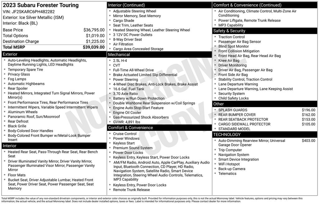 Certified. Ice Silver Metallic 2023 Subaru Forester Touring AWD Lineartronic CVT 2.5L 4-Cylinder DOHC 16V