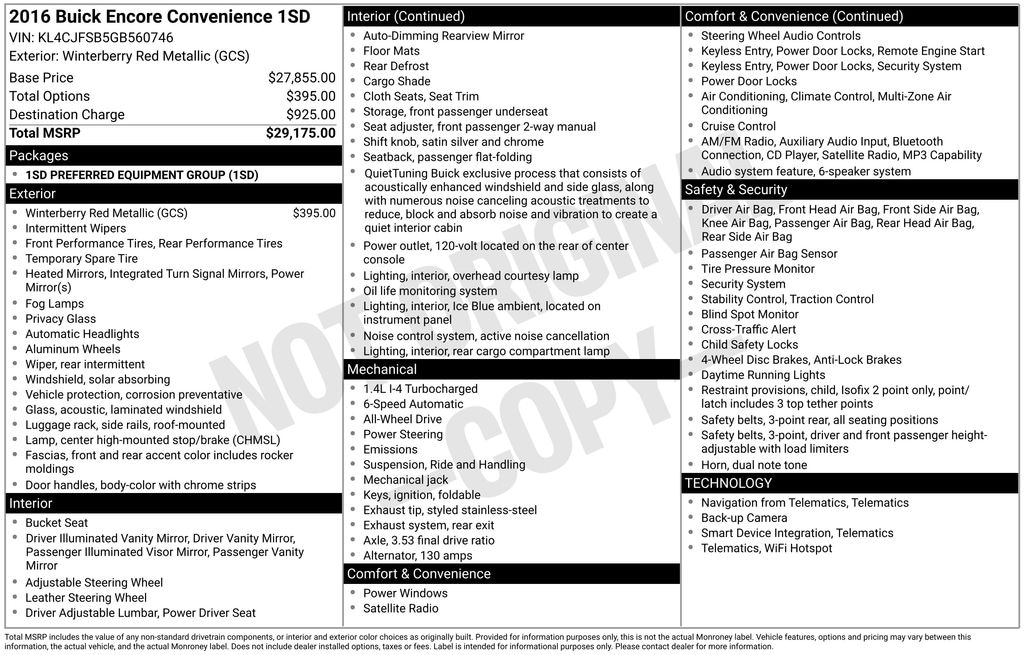 Winterberry Red Metallic 2016 Buick Encore Convenience AWD 6-Speed Automatic Electronic with Overdrive ECOTEC 1.4L I4 SMPI DOHC Turbocharged VVT