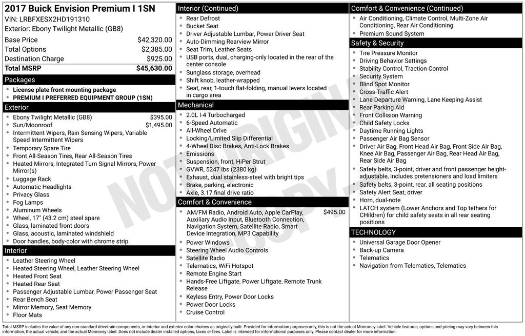 Ebony Twilight Metallic 2017 Buick Envision Premium I AWD 6-Speed Automatic 2.0L 4-Cylinder DGI DOHC VVT Turbocharged