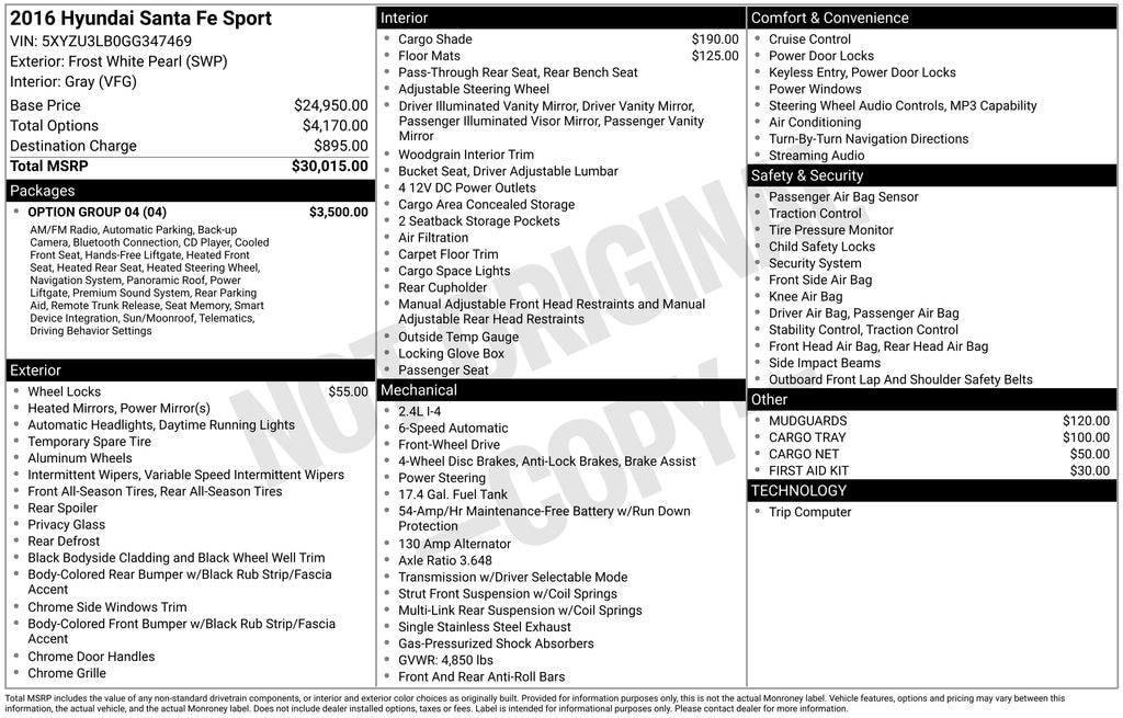 Frost White Pearl 2016 Hyundai Santa Fe Sport 2.4 Base FWD 6-Speed Automatic with Shiftronic 2.4L I4 DGI DOHC 16V