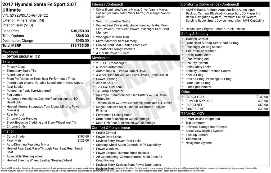 Mineral Gray 2017 Hyundai Santa Fe Sport 2.0T Ultimate AWD 6-Speed Automatic with Shiftronic 2.0L I4 DGI DOHC 16V Turbocharged