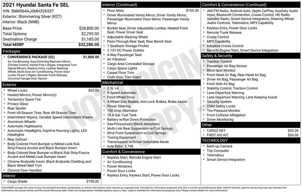 Shimmering Silver Pearl 2021 Hyundai Santa Fe SEL FWD 8-Speed Automatic with SHIFTRONIC 2.5L I4 Black Cloth.