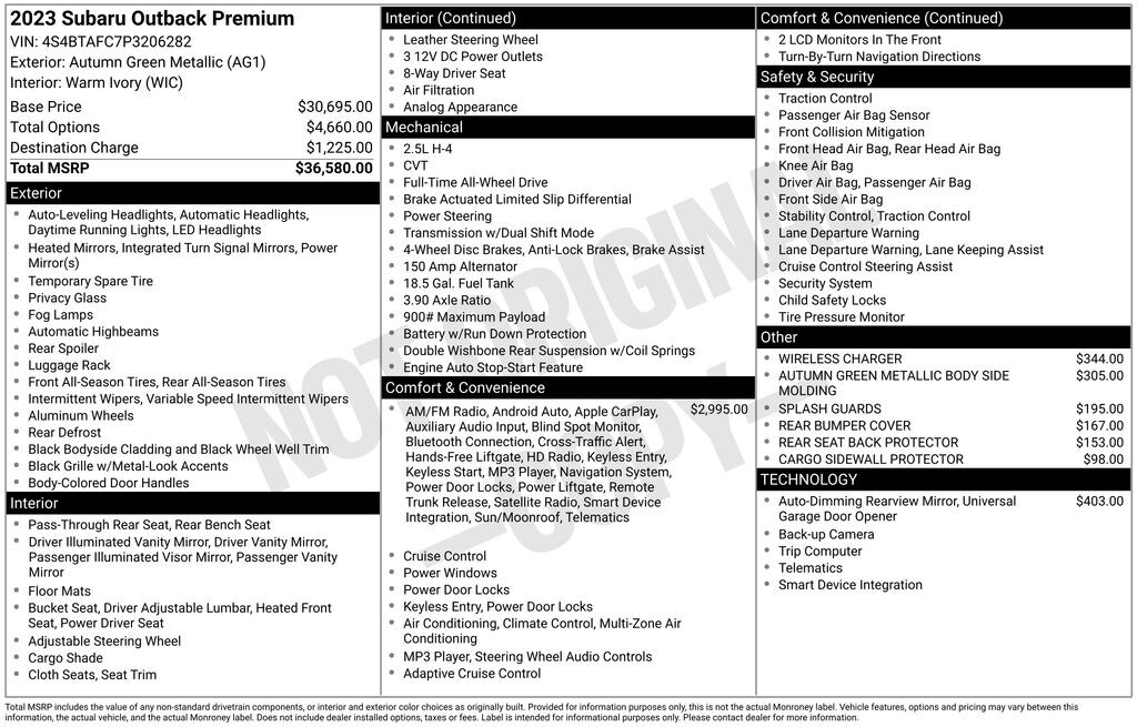 Certified. Green Metallic 2023 Subaru Outback Premium AWD CVT Lineartronic 2.5L 4-Cylinder DOHC 16V