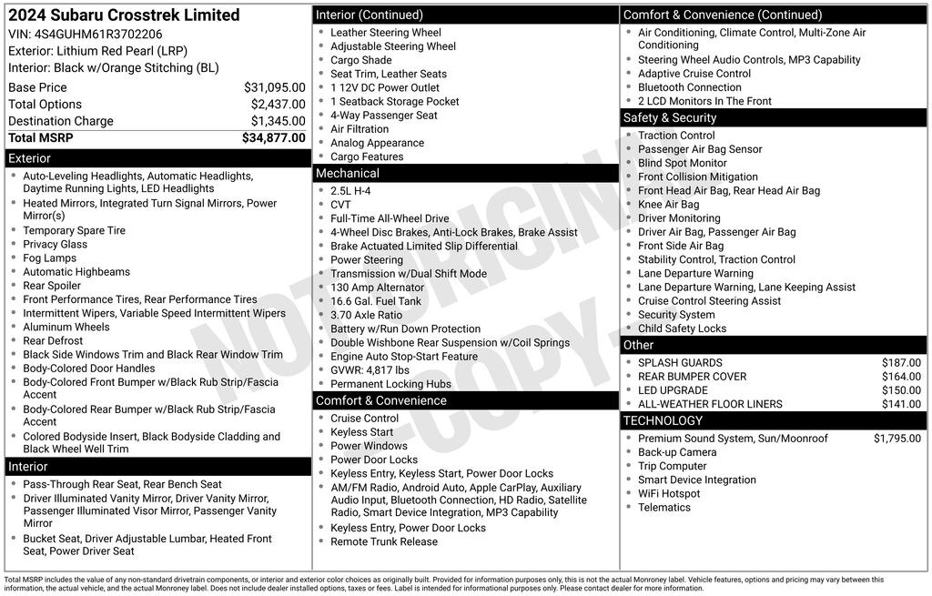 Certified. Red Pearl 2024 Subaru Crosstrek Limited AWD Lineartronic CVT 2.5L 4-Cylinder DOHC 16V