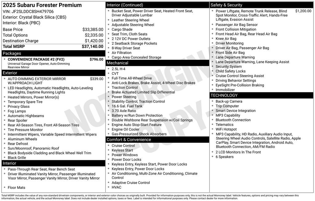 Certified. Crystal Black Silica 2025 Subaru Forester Premium AWD Lineartronic CVT 2.5L 4-Cylinder DOHC 16V